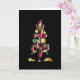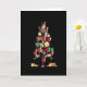 Joli design saisonnier représentant un sapin de Noël fait de verres à vin rouge, décoré de boules, d'étoiles et de rubans, et des cadeaux en dessous.