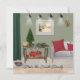Notre carte pittoresque de la scène de Noël vous invitation dans un espace cosy à la maison où vous découvrirez un décor moderne à l'ambiance un peu vieillotte. Dans ce décor de Noël à la maison est un must ! Les rêves et les poinsettias de mille pieds abondent, cette carte de voeux déborde de joie festive et de charme exubérant. Fait amusant : Le carré lance l'oreiller dans cette scène est disponible à l'achat dans notre "Regal Floral Red, Green, Ivory Collection." Offrez le coussin et la carte pour un cadeau de Noël festif !