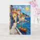 A quaint seaside village in Europe with a sailboat ready to go.