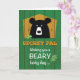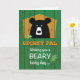 Souhaitez à votre pote secrète une fête de la Saint-Patrick avec cet ours sur un arrière - plan à porte à grains à l'allure boisée. Les shamrocks verts ajoutent une touche de chance "béarez" !