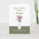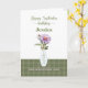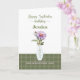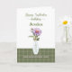Surprenez quelqu'un avec la beauté enchanteresse de l'Aster de Septembre. Cette carte d'anniversaire personnalisable présente une belle floraison dans un vase en verre sur une table verte en plaid, ajoutant une touche personnelle à vos souhaits chaleureux.