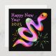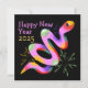 Cette élégante carte de Nouvel An présente un serpent excentrique avec des feux d'artifice colorés sur un arrière - plan noir.