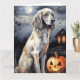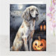 Carte Setter Anglais d'Halloween avec citrouilles effray