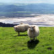 Un design photographique de moutons de montagne Weslh et vue sur l'estuaire Dyfi. Pays de Galles Royaume-Uni.