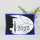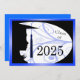 Une silhouette de fille dans son casquette et sa robe. Les motifs floraux sont utilisés dans l'arrière - plan. Le dos a un arrière - plan bleu avec des lettres noires pour les annonces de remise de diplômes.