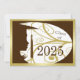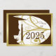 Une silhouette d'une jeune femme dans son casquette et sa robe. Les motifs floraux sont utilisés dans l'arrière - plan. Le dos a un arrière - plan marron avec des lettres d'or pour la faire-part de graduation.