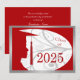 Une silhouette d'un jeune homme dans son casquette et sa robe. Des motifs floraux dans l'arrière - plan. Le dos a un arrière - plan rouge avec des lettres blanches pour les annonces de remise de diplômes.
