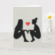 This design shows two women in black silhouette, facing each other in profile as they crouch gently on a soft gray background. Their outlines are sharp and simple, which makes their closeness feel quiet and focused. Between them floats a bright red heart, centered like the one strong point of color. Their hands angle toward the heart as if they’re both reaching for the same shared feeling, without needing to touch. One figure has long hair flowing down, while the other wears her hair in a bun, giving them distinct looks while still feeling connected. There isn’t any text on the front, so the picture carries the whole message on its own 🥰. It feels meaningful to give because it suggests love, trust, and being present with someone, whether that’s a partner or a close friend ❤️—a sweet way to share Valentine’s Day sentiments.