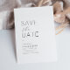 carte de mariage simple et minimaliste noire et blanche pour annoncer la date de l'événement. Le texte et les couleurs peuvent être modifiés.