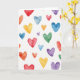 This greeting card shows watercolor hearts scattered across a white background in a loose, easy pattern. The hearts come in many sizes, from small accents to larger ones that catch your eye as you look around. Colors move through reds, oranges, yellows, greens, blues, and purples, with some hearts darker and others light and see-through. You can see the paint softly bleeding at the edges, which gives each heart a gentle, washed look. There aren’t any people or objects—just a field of hearts that feels like a simple reminder that love can show up in lots of different ways. There’s no text on the front, so the design leaves room for your own words inside. It feels meaningful to give because it works for romance or close friendship without being too specific 🥰❤️.