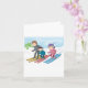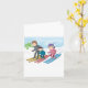 Une famille ensemble skie sur une pente. Cette conception semble vraiment efficace sur ces cartes de voeux