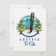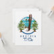 Ski, logo d'affiche de ski dans un joli paysage de dessin animé.