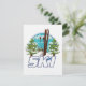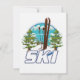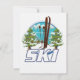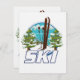 Ski, logo d'affiche de ski dans un joli paysage de dessin animé.