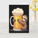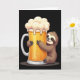 This card shows a cozy sloth in warm browns and cream hugging an oversized glass mug of golden beer, its relaxed face turned toward the drink like a fond friend. The background is deep black, making the sloth and mug stand out as the clear focus. The beer glows amber with small highlights, and there’s a thick cap of pale foam spilling down the sides in slow, creamy trails. Tiny droplets cling to the glass, giving it a chilled look that feels ready for a toast ☘️. The sloth’s claws spread gently across the mug as if holding someone close, adding a sweet, affectionate touch to the scene. Near the top, St. Patrick’s Day text sits centered in bright green, easy to spot against the dark backdrop 💚. The foam gathers in rounded peaks along the rim while a few glossy drips slide down the front of the mug.