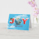 Texte de joie rouge gras sur un arrière - plan bleu aqua avec des nuages et des flocons de neige et la terre de la planète pour Noël, Tout le texte peut être changé.