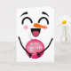 Venez dans l'esprit de Noël avec cette jolie carte de Noël de bonhomme de neige souriant. Conçu avec un bonhomme de neige aux joues roses et sourire joyeux tenant un ornement, cette carte est sûr d'apporter de la joie à la fois à la famille et aux amis. Personnalisez-le pour un cadeau de vacances unique que tout le monde aimera.