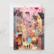 A charming evening scene in a quaint village courtyard with vibrant balloons and birds carrying love letters. Warm lights illuminate the street as people gather under festive decorations.