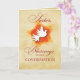 Une belle petite colombe blanche sur un arrière - plan brun et orange doux avec une texture naturelle. La carte parfaite pour envoyer des bénédictions et vos félicitations à votre soeur le jour de la Confirmation.