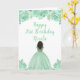 Cette carte d'anniversaire présente des fleurs florales vert menthe à la fausse parties scintillant et une belle princesse à la peau foncée et une robe élégante. C'est parfait pour une fête d'anniversaire.
