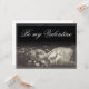 "Be My Valentine - Lying Young Woman" montre une jeune femme allongée dans une prairie, entourée de fleurs. La scène est dans les tons doux sépia, donnant à l'image un caractère nostalgique et romantique. La lettre "Be My Valentine" dans une police élégante complète le design et transmet un message d'amour tendre.