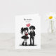 Une carte de la Saint-Valentin sombrement mignonne pour les amateurs de tout ce qui est gothique. Ce design présente un adorable couple gothique habillé de noir, tenant un ballon en forme de cœur et des roses rouge sang, associé à la phrase ludique mais dramatique « Sois à moi. Ou sinon. »