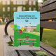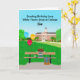 A college campus bench scene features a rich chocolate birthday cake perched atop a stack of books, alongside a backpack, ice tea and cell phone. Festive birthday balloons are tied to the bench, with the college campus stretching into the background creating a cheerful, college-themed birthday card for your son.