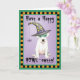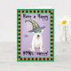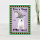 Envoyez des salutations d'Halloween avec cette carte d'un Dogo Argentino mignon portant un masque vert et un casquette sorcier décoré d'une araignée stupide. Idéal pour les enfants de tous âges qui aiment Dogos et Halloween. Faites une Happy HOWL-oween !