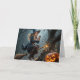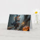 Une sorcière à balai en envoyant un texto sur son téléphone portable entre en collision avec un arbre près d'une lanterne clignotante. Le texte intérieur est modifiable.