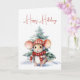 Aquarelle souris de Noël portant un casque avec pin dans des flocons de neige. Le texte est modifiable.