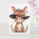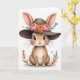 This design shows a sweet, human-like bunny centered on a bright white background, looking straight ahead with a calm expression that feels like a quiet hello 🐰. Soft lighting brings out the plush texture of its fur and a light blush on its cheeks, as if it’s been caught in a tender moment meant for a close friend. A wide-brimmed brown hat sits on its head, topped with a lush ring of flowers that reads like a springtime gift 🌷. The floral crown mixes pink and orange rose-like blooms with small blossoms and green leaves, arranged in layered clusters that spill gently around the hat. Large dark-brown eyes hold a tiny highlight, and the slight upturned smile and fine whiskers add a shy, affectionate tone to the face. There’s no visible text on the front, leaving the open white space to keep all attention on the character and its floral details. Near the lower body, small sprigs of flowers and leaves curve upward in a light frame beneath the bunny.