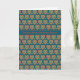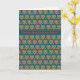 Une jolie carte de voeux pour la St Dwynwen's Day avec un motif de coeur rouge et vert dans un style folklorique sur un arrière - plan bleu foncé et 'Happy St Dwynwen's Day' en gallois.