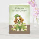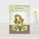 Célébrez la Saint-Patrick avec notre adorable carte avec une charmante espagne en vert, tenant un shamrock dans la bouche. Sur fond de douce aquarelle verte, ce petit sucré s'installe et capte l'essence de l'esprit irlandais. Parfait pour envoyer des voeux chaleureux et des moments de joie à vos proches. Le message intérieur complète le visuel, exprimant des sentiments d'amour du chiot, de joie irlandaise et de joie sincère. Idéal pour ceux qui apprécient les chiens mignons et chiots avec une touche de charme St. Patrick.