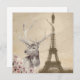 Vintage teinte sépia photo arrière - plan de la Tour Eiffel avec couverture de cerf de belle taille à base florale