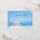 Cette carte Save the Date montre une scène de plage de deux étoiles de mer sur le sable, et l'eau marine immaculée dans l'arrière - plan. Ce design est parfait pour un mariage d'été, un mariage de plage, un mariage de bord de mer ou un mariage de destination.