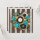 Carte Steampunk Clock and Turquoise Roses on Striped