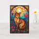 Carte Style de vitrail Kitty orange avec fleurs roses