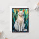 Carte de vœux charmante de style vitrail. L'or est imprimé (faux or), pas métallisé ou pailleté. Le texte peut être modifié ou supprimé. Image générée par IA par IveyCottage.