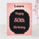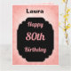 Jolie carte de voeux personnalisée rose pastel et noir 80e anniversaire.
