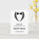 Il est temps de s'adapter et de demander à votre famille et à vos amis de faire partie de votre fête de mariage. Une carte astucieuse pour demander aux groomsmen, porteurs de bague, huissiers et le meilleur homme d'être dans la fête de mariage.