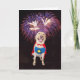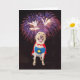 Grand labo jaune habillé en super héros. Vous pouvez customiser le texte à l'intérieur, qui dit : "Ayez un CHIEN QUI EST VENU SUPER Anniversaire !" Les feux d'artifice sont à l'adresse PublicDomainPictures.net.