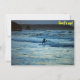 Un surfeur surfe à la tombée de la nuit sur la côte nord de Cornwall, Angleterre, Royaume-Uni.