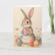 Vintage inspired Easter bunny illustration with colorful Easter eggs and sweet flowers. The greeting inside is a lovely vintage script reading simply Happy Easter!