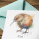 Ajoutez une touche personnelle à tout message avec une carte personnalisée Sweet Kiwi. Ce design est doté d'un charmant kiwi aquarelle, mis en vie avec des tons doux et terreux et des touches délicates. C'est une façon attachante d'envoyer des voeux pour toute occasion. L'intérieur de la carte est une toile vierge pour votre message sincère, tandis que l'avant offre un espace spécial pour une ligne de texte personnalisée. C'est la carte parfaite à envoyer à une amie comme Emily pour célébrer son nouveau travail avec une note douce qui dit "Si fière de vous, Emily !" Ou, utilisez-le pour un anniversaire, avec "Joyeux anniversaire, papa ! Octobre 2026." Le style art doux en fait un choix idéal pour une variété de sentiments, que vous envoyiez une note de remerciement ou une carte pour dire bonjour.