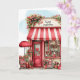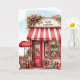 Personalize your special Valentine with this sweet folded greeting card printed with a quirky little flower shop filled with lots of cute little hearts and potted flowers details. Watercolor style illustration has an abstract pastel background front and back. Just edit your name text on the shop front and message inside, Created in a palette of mostly reds and white colors, with your choice of sizes.
