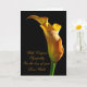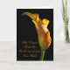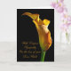 A stately golden arum lily stands lit from the side. A parfait flower to convey words of sympathy.