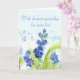 Une carte de sympathie réfléchie décorée des fleurs bleues molles de pied-d'alouette peintes dans l'aquarelle. Belle carte pour envoyer une pensée à vous à un ami passant par un temps difficile. Vous pouvez également personnaliser l'avant et l'intérieur avec vos propres messages, polices et couleurs de police.