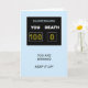 100e anniversaire Carte d'anniversaire amusante à donner pour un anniversaire. Un tableau de bord montre l'âge comme le score gagnant contre la mort. Les mots "Vous gagnez, gardez le cap !" terminer la scène.