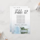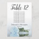 Ces belles cartes de numéro de table faciliteront la recherche de sièges à votre réception de mariage. Elles présentent un design simple mais élégant avec des lettres de calligraphie script et un seul rose à long tige bleu poussiéreux ou bleu poudreux pâle sur son côté réfléchissant dans l'eau. La carte comprend un tableau de sièges avec 10 noms. Il y a aussi de la place pour les noms du couple et la date du mariage. Cette carte est disponible dans une variété de tailles et est plus grande que nos cartes de numéro de table standard.