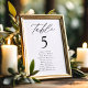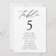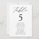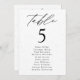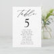Elégant tableau de sièges de mariage avec "table" affiché en script de calligraphie noir avec le numéro de table et les noms d'invités indiqués ci-dessous sur un arrière - plan blanc avec des pointes noires subtiles. Le dessin se répète à l'arrière. Pour commander le tableau des sièges du numéro de table, modifiez chaque carte avec le numéro de table et les noms des invités et ajoutez-la à votre panier. Conçu pour coordonner avec notre collection de mariages Modern Elegance.