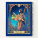 Revue dans une interprétation de la carte Arcana Major "L'ermite", une figure rocheuse tenant une lanterne et le personnel, symbolisant l'introspection et la sagesse. L'arrière - plan d'un ciel étoilé au feuillage luxuriant et coloré donne une esthétique mystique, Art Nouveau.